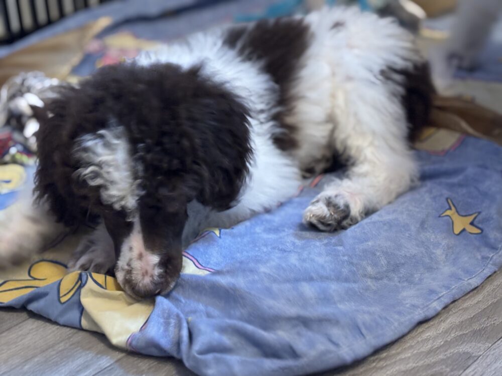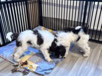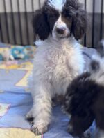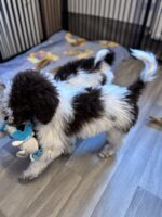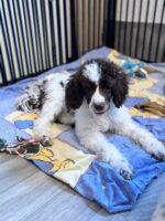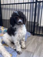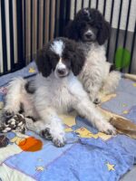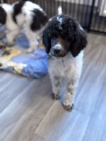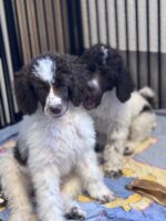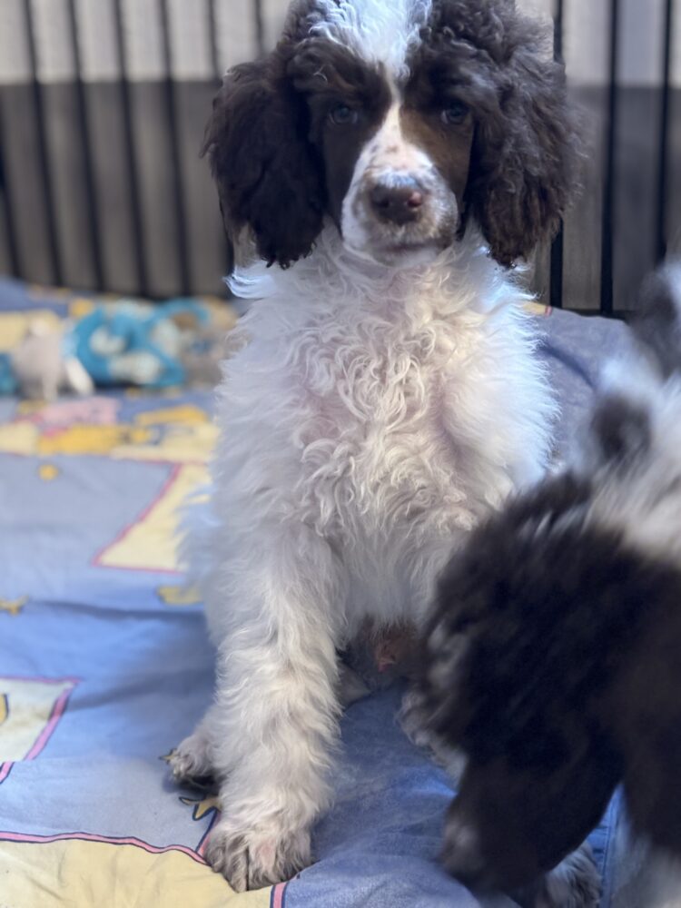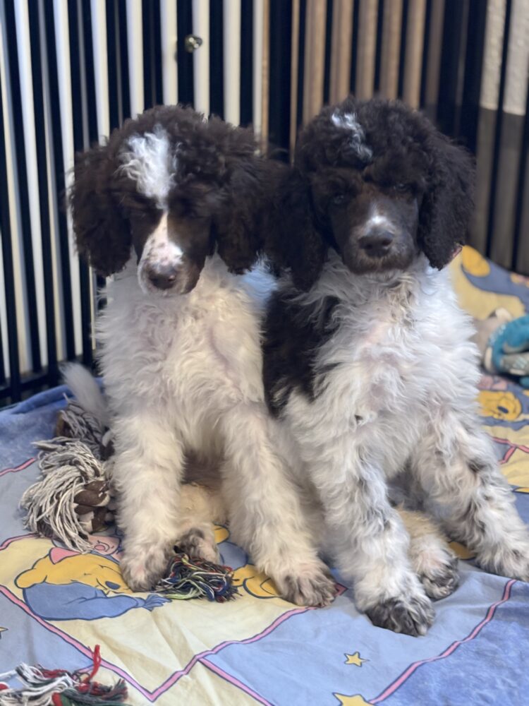 Unsere beiden braun/weißen Großpudel Rüden Iowa (grün) und Ikarus (orange) suchen noch ihr 5-Sterne zu Hause und dürfen nun ausziehen. Die Jungs sind sehr aufgeweckte und freundliche Welpen. Unsere Welpen kennen kleine Kinder und sind sehr sozial.
