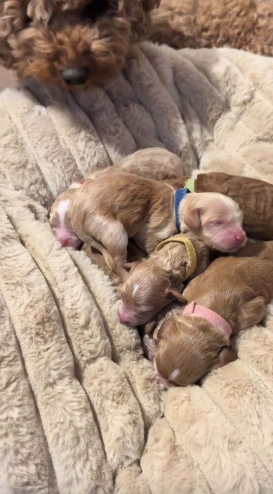 Unsere süßen Maltipoo-Welpen sind am 11.10.2025 geboren und wachsen liebevoll in unserer Familie auf. Momentan kuscheln sie noch viel mit ihrer Mama, werden aber von Tag zu Tag neugieriger und entwickeln sich prächtig.