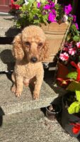 Unser Toypudel/Zwergpudel steht als Deckrüde zur Verfügung. Er ist im Februar 21 geboren, Farbe Red-Apricot, Schultergröße 28 cm , Gewicht…