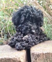 Die Hündin hat ein weiches, lockiges, schwarzes Fell, das kaum haart und sich gut für Allergiker eignet. Sie ist tierärztlich untersucht, mehrfach entwurmt, geimpft, gechipt und besitzt einen EU-Heimtierausweis.