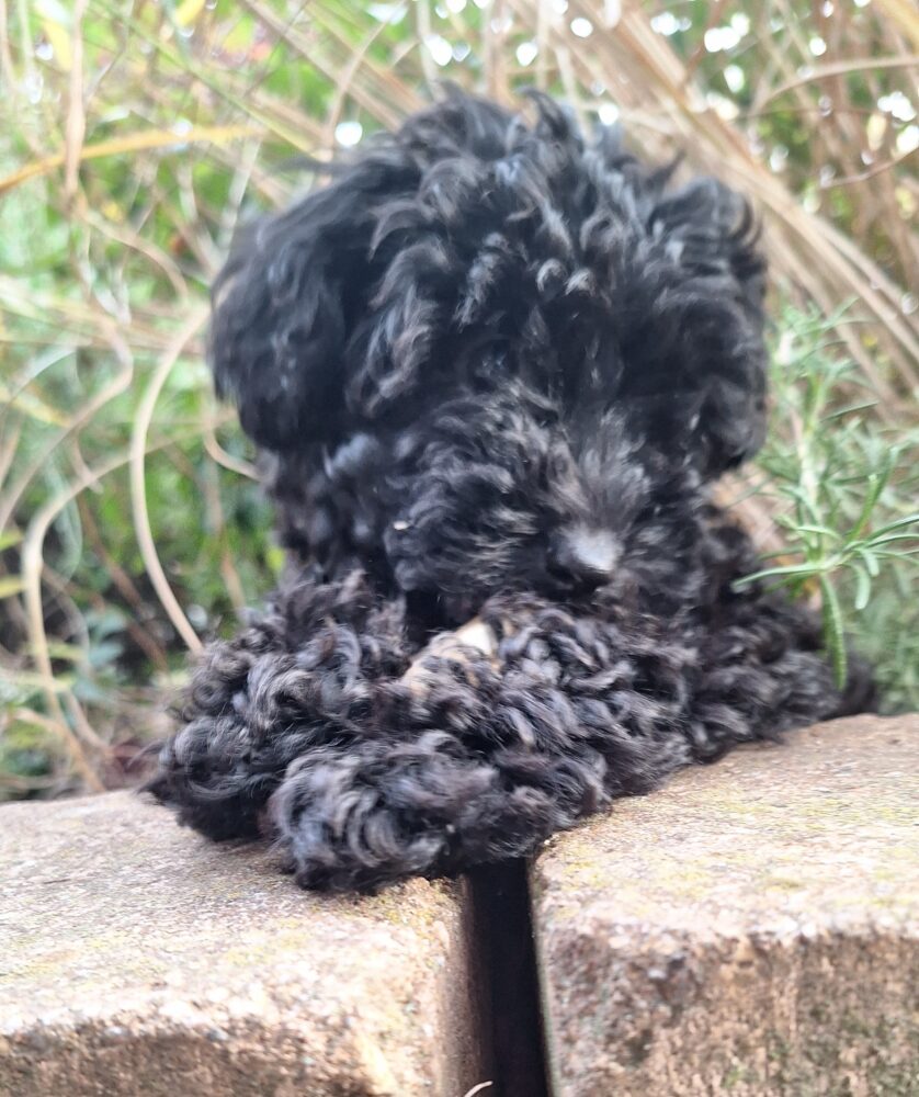 Die Maus wächst bei uns im Haus mit engem Familienanschluss auf, ist bestens mit Alltagsgeräuschen, Kindern sowie anderen Hunden vertraut. Sie ist neugierig, verspielt und liebt es, zu kuscheln.Sie entwickelt bereits ihre eigene kleine Persönlichkeit. Typisch Pudel: sie sind sehr intelligent, lernfreudig und menschenbezogen.
