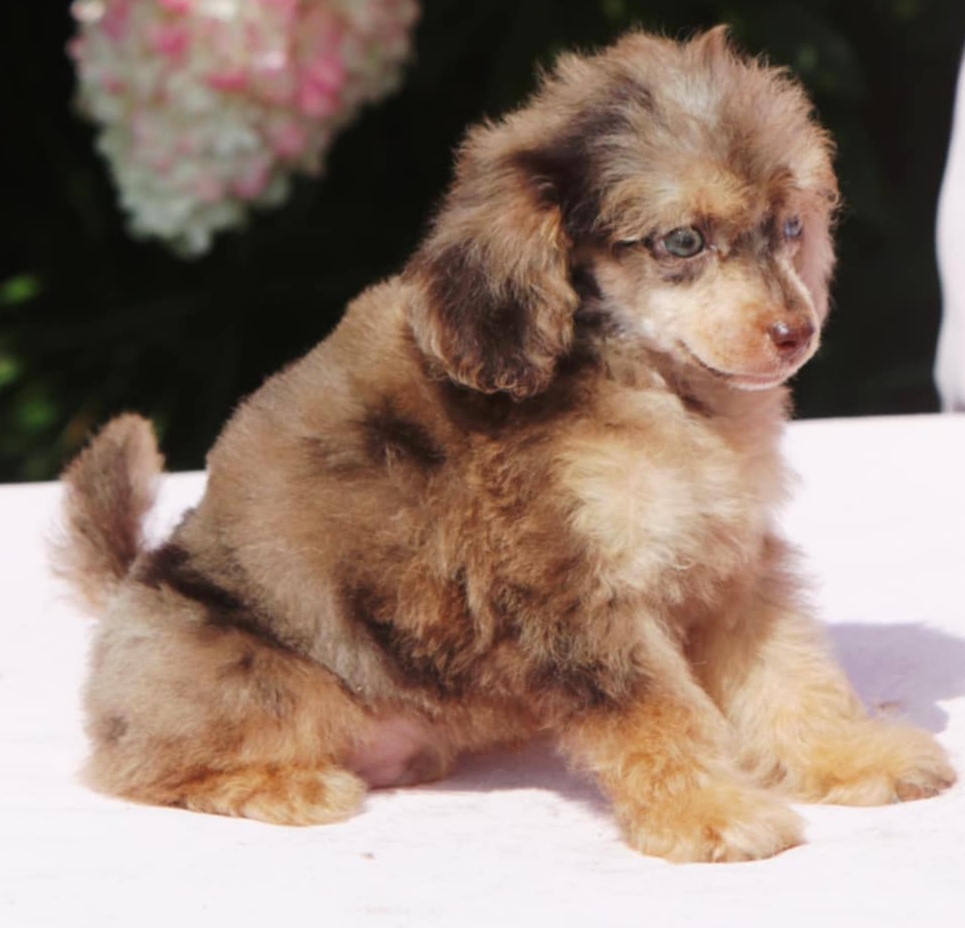 Einzigartiger Zwergpudel Rüde in schoko merle tan