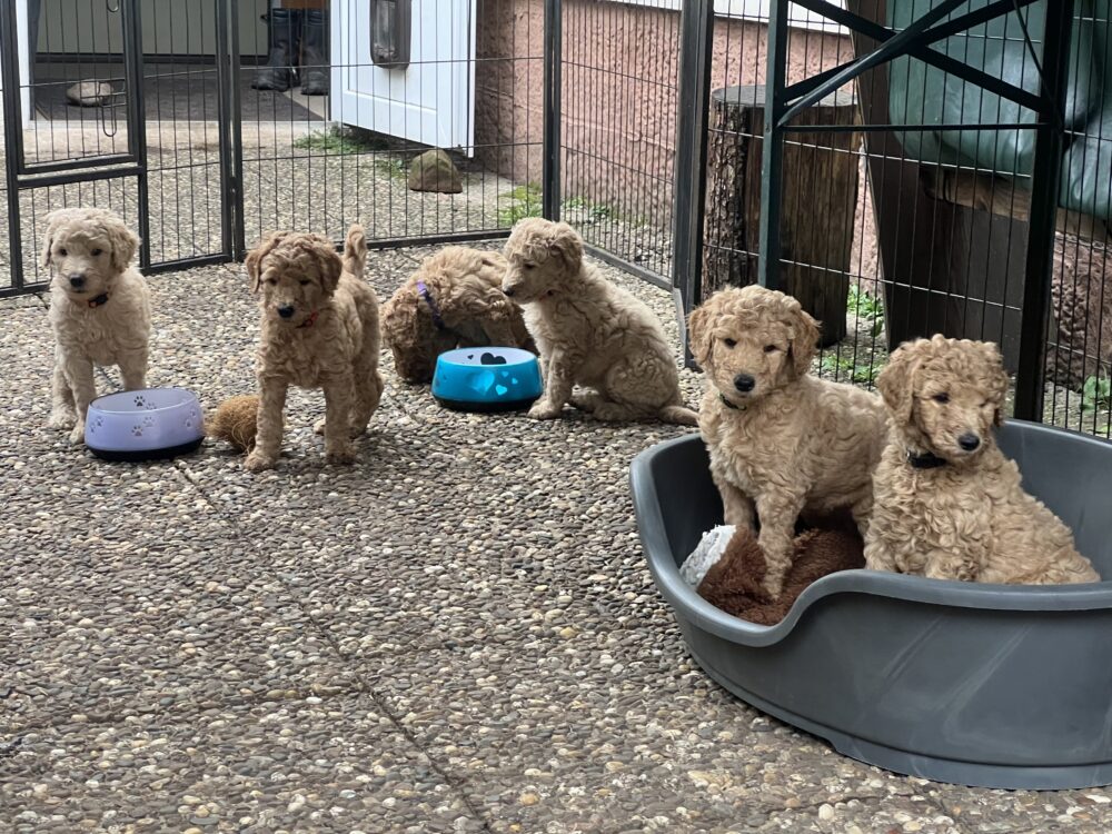 Die Eltern sind beide auf Zuchttauglichkeit überprüft, Gesundheitszeugnisse können gerne vor Ort eingesehen werden. Wir betreiben eine überprüfte, genehmigte und empfohlene Hobbyzucht, mit Auszeichnung als vorbildliche Großpudel - Zuchtstätte in artgerechter Haltung. Die Kleinen wachsen hier in verantwortungsvoller, familiärer Atmosphäre auf und dürfen natürlich Haus, Hof und Garten erkunden. Die Eltern wohnen beide bei uns und kümmern sich rührend um ihre Pudelkinder.